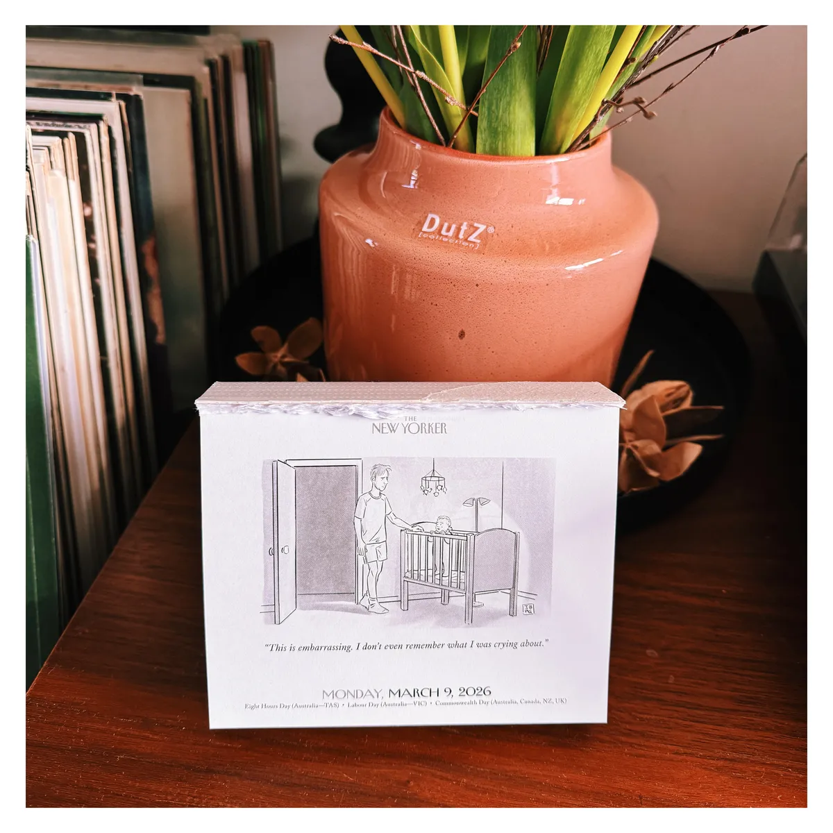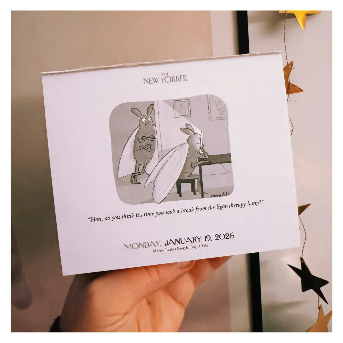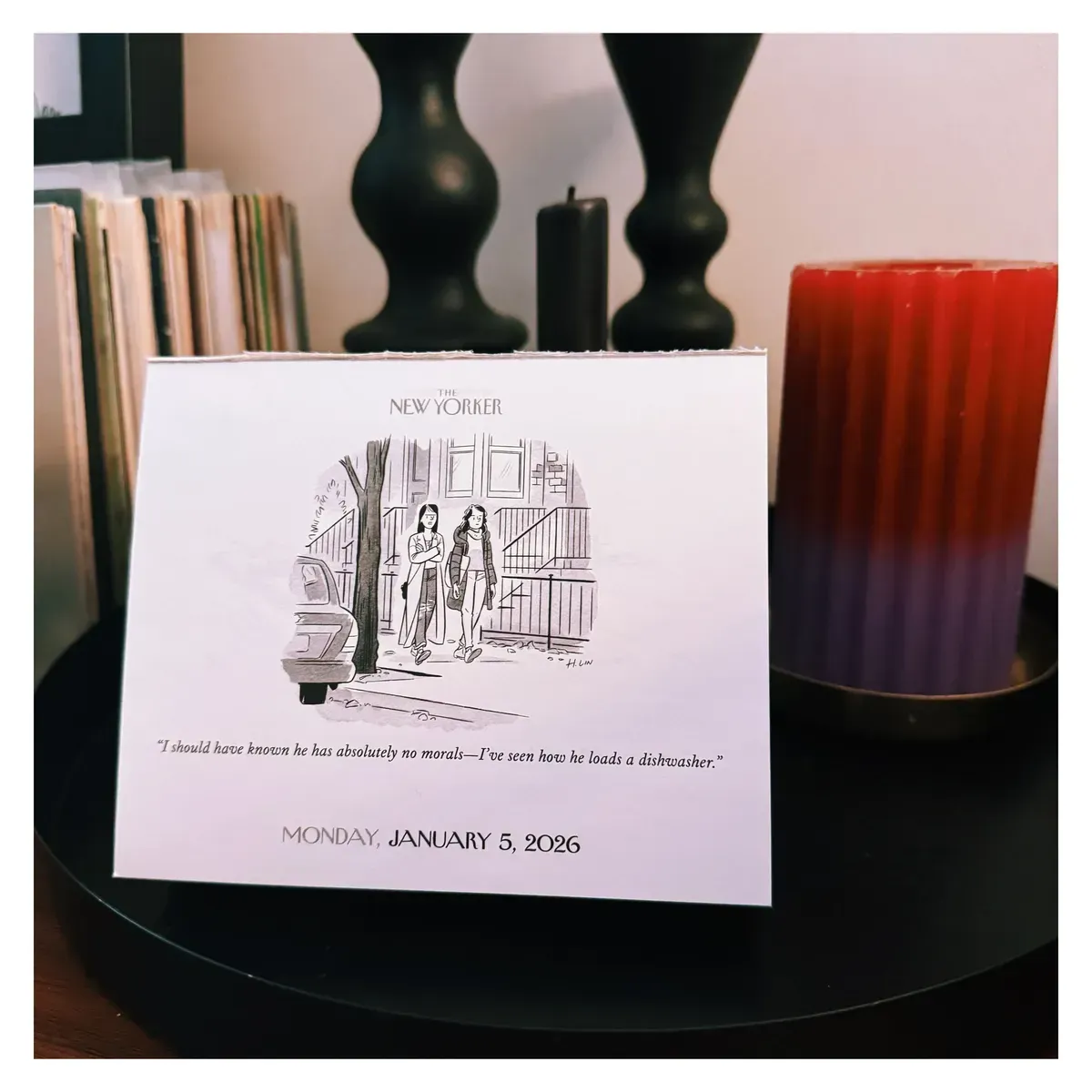 for 2026 we have the New Yorker Magazine calendar. it's so much fun!