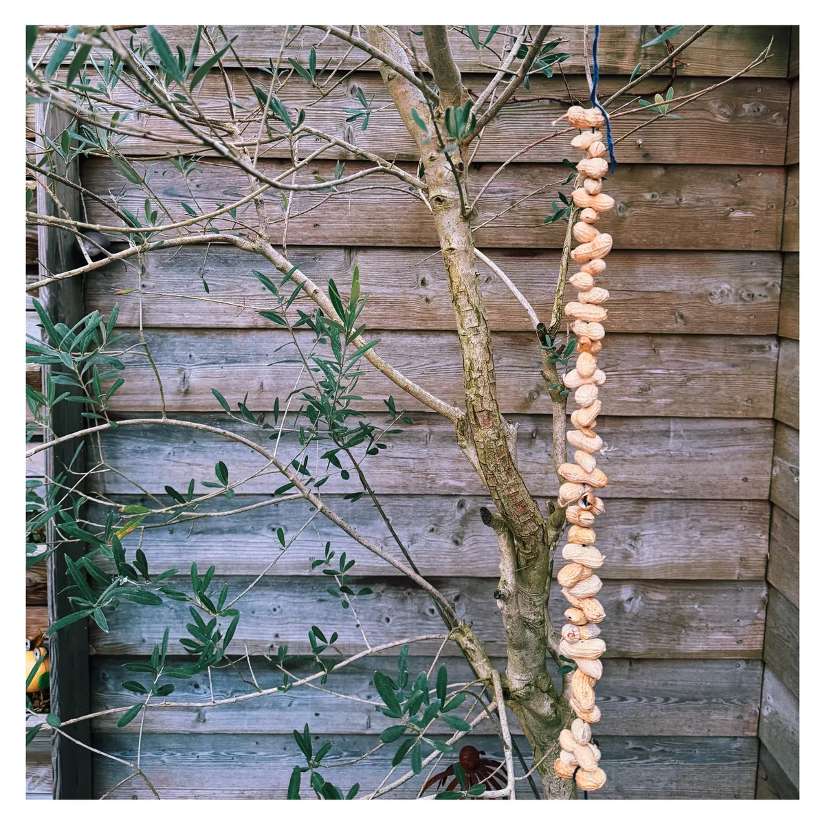 Monday morning is for watching a lot of birds fly into our garden and snacking on the peanut hanger the daughter made