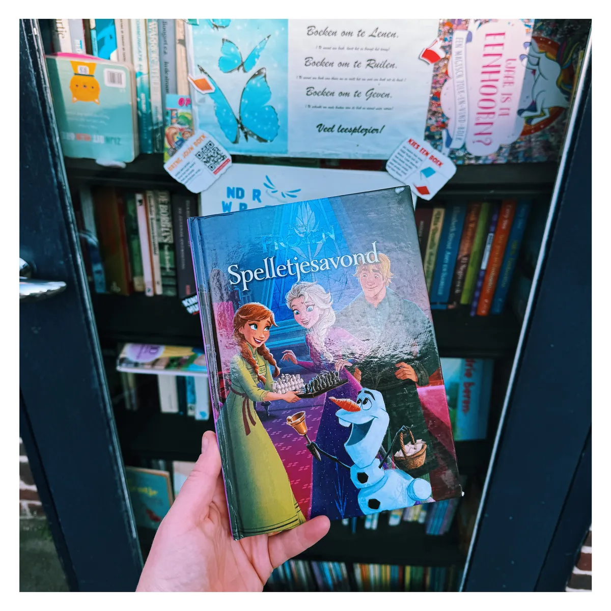 came across a little free library and they had children books now. we borrowed the Elsa book.